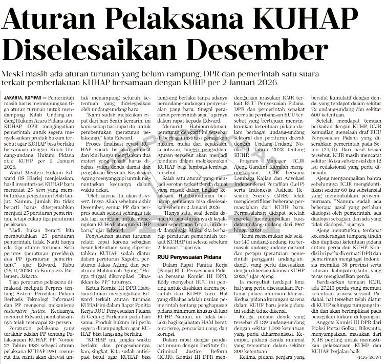 | Judul | Aturan pelaksana KUHAP diselesaikan Desember |