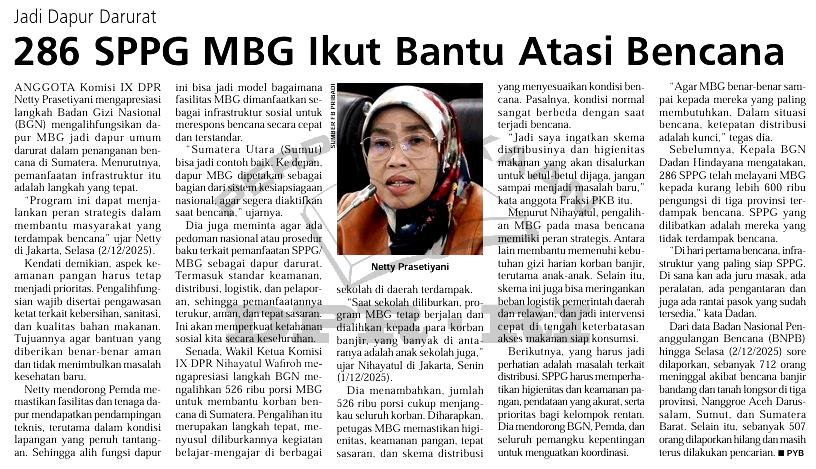 | Judul | Jadi dapur darurat: 286 SPPG MBG ikut bantu atasi bencana |