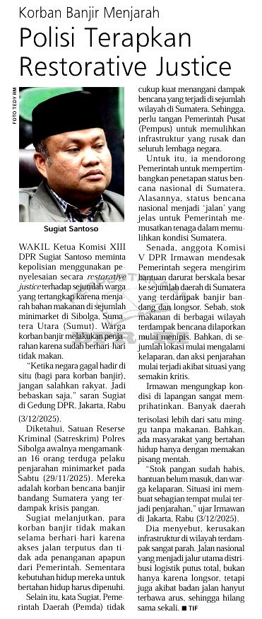 | Judul | Korban banjir menjarah: polisi terapkan restorative justice |