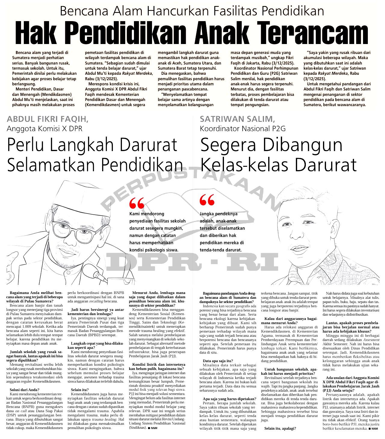 | Kata Kunci | Abdul Fikri Faqih,Satriwan Salim,Sumatera,revitalisasi,BNPB,Badan Nasional Penanggulangan Bencana,fasilitas,sekolah,trauma healing,PJJ,Pembelajaran Jarak Jauh |