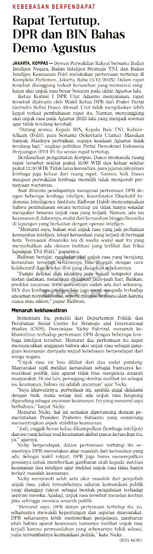 | Judul | Kebebasan berpendapat: rapat tertutup, DPR dan BIN bahas demo agustus |