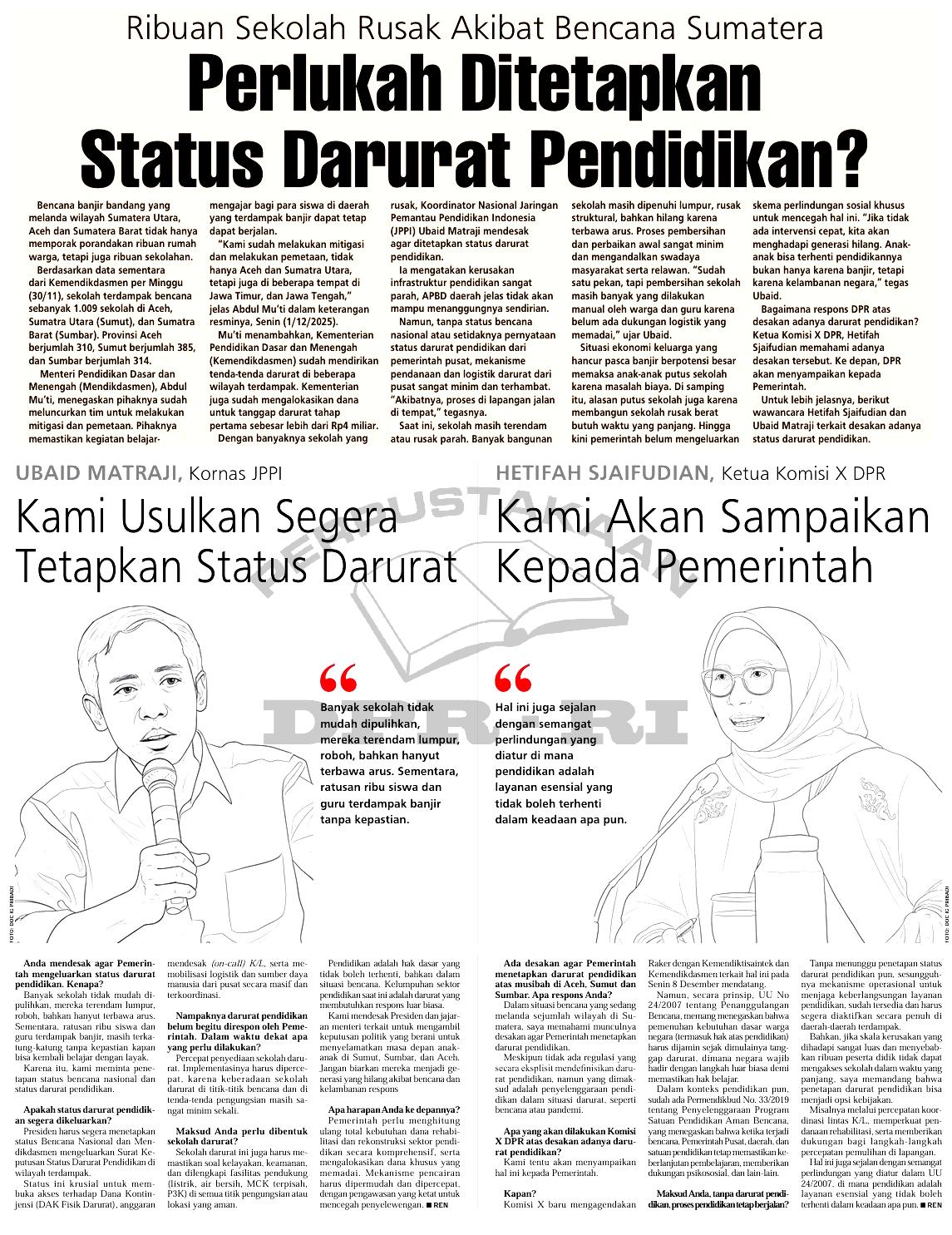 | Judul | Ribuan sekolah rusak akibat bencana Sumatera: perlukan ditetapkan status darurat pendidikan? |