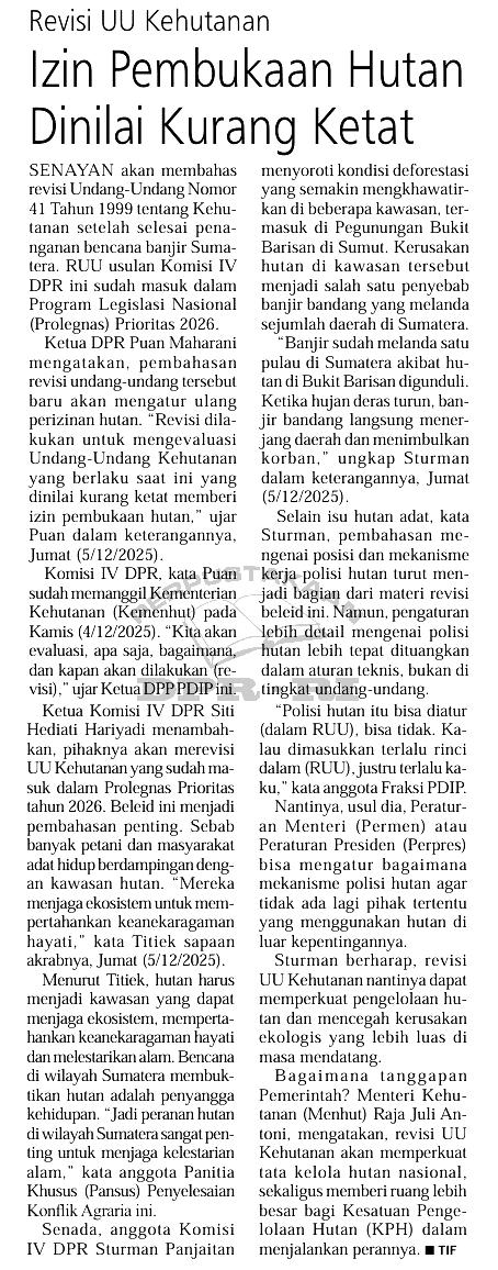 | Judul | Revisi UU Kehutanan, Izin pembukaan hutan dinilai kurang ketat |