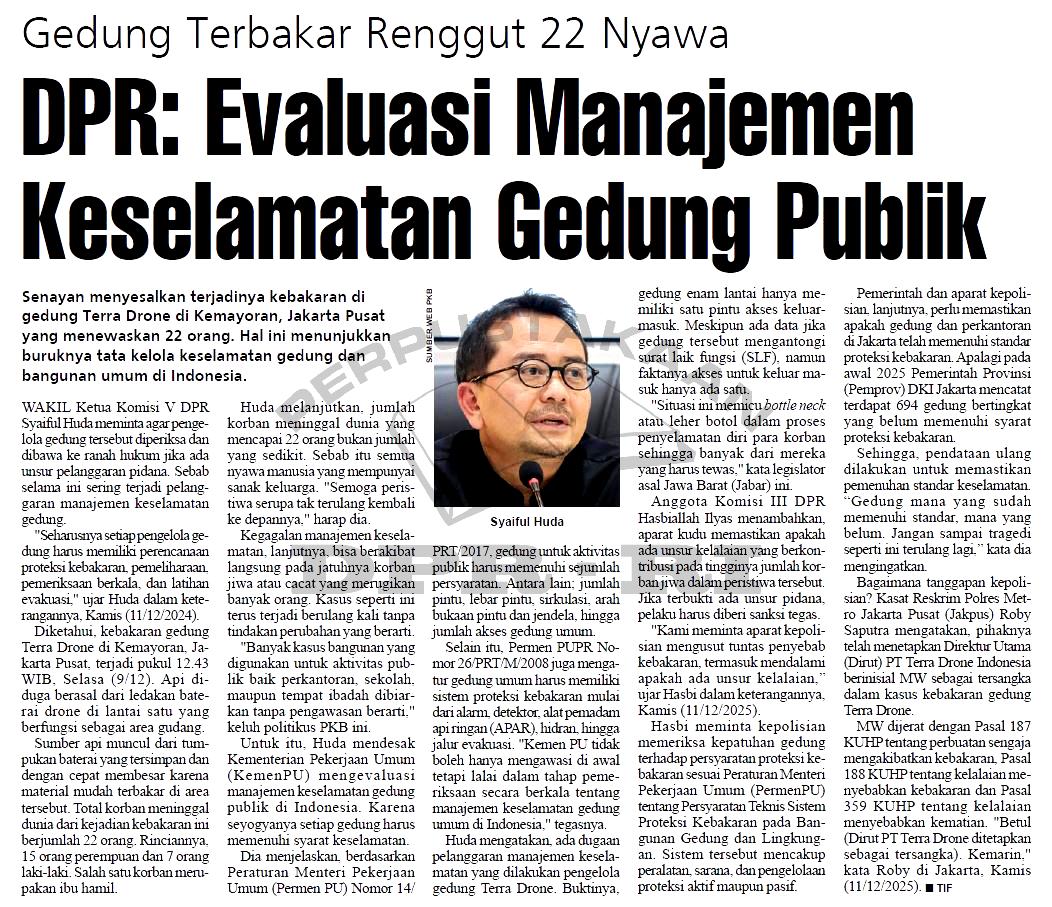 | Judul | DPR: Evaluasi Manajemen Keselamatan Gedung Publik |