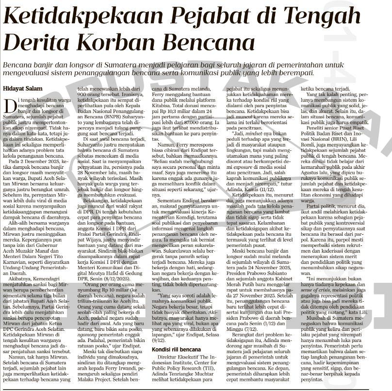 Ketidakpekaan Pejabat di Tengah Derita Korban Bencana