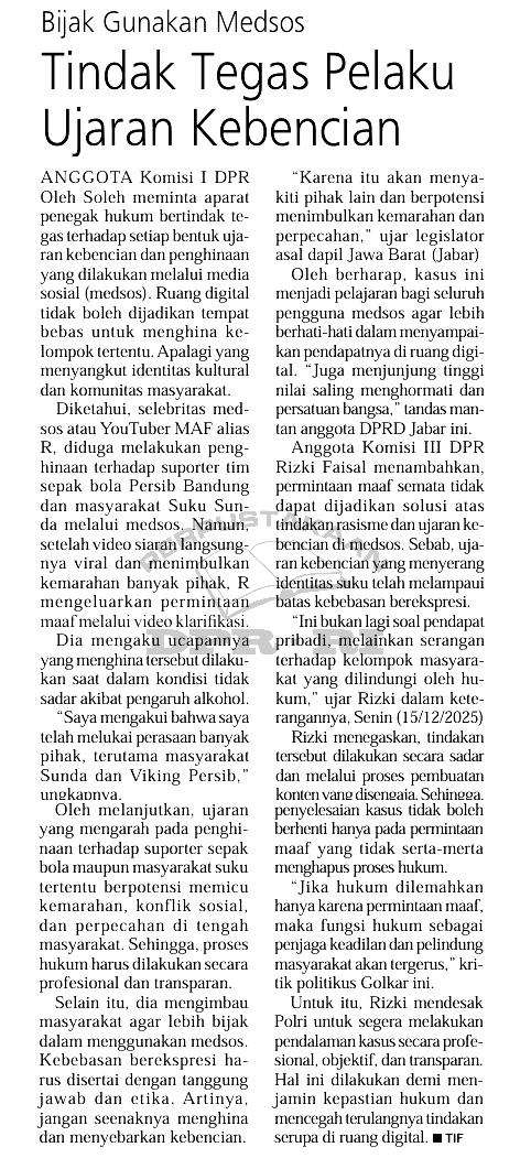 | Judul | Bijak gunakan medsos, tindak tegas pelaku ujaran kebencian |