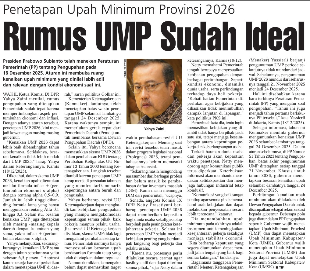 | Judul | Penetapan upah minimum Provinsi 2026: rumus UMP sudah ideal |