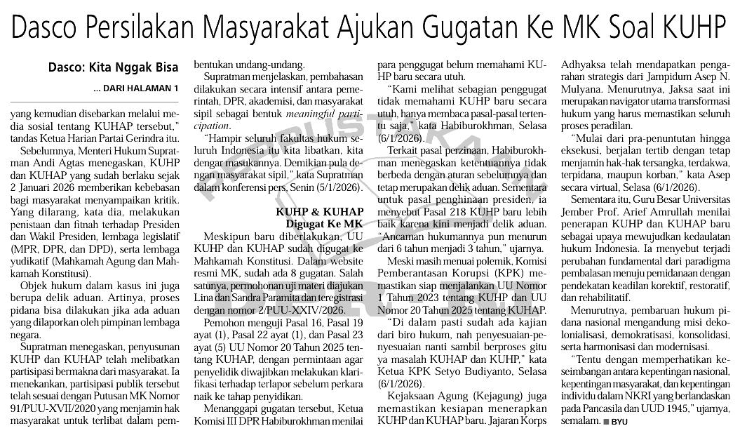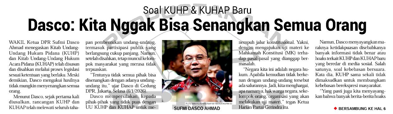 | Judul | Soal KUHP & KUHAP, Dasco: kita nggak bisa senangkan semua orang |