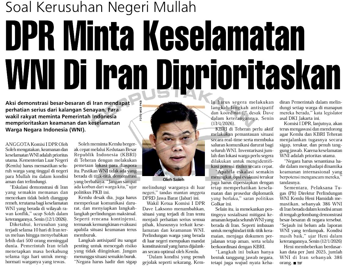 | Judul | Soal kerusuhan negeri Mullah,DPR minta keselamatan WNI di Iran diprioritaskan |