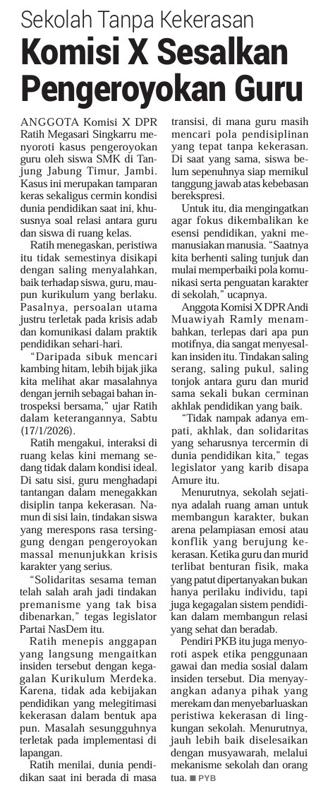 | Judul | Sekolah tanpa kekerasan, komisi X sesalkan pengeroyokan guru |