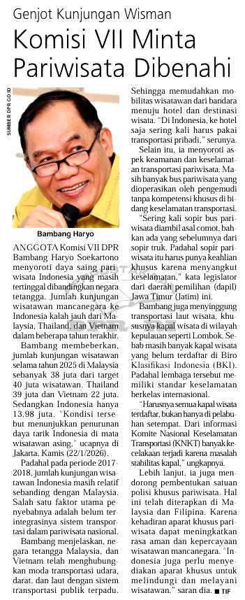 | Judul | Genjot kunjungan wisman, komisi VII minta pariwisata dibenahi |