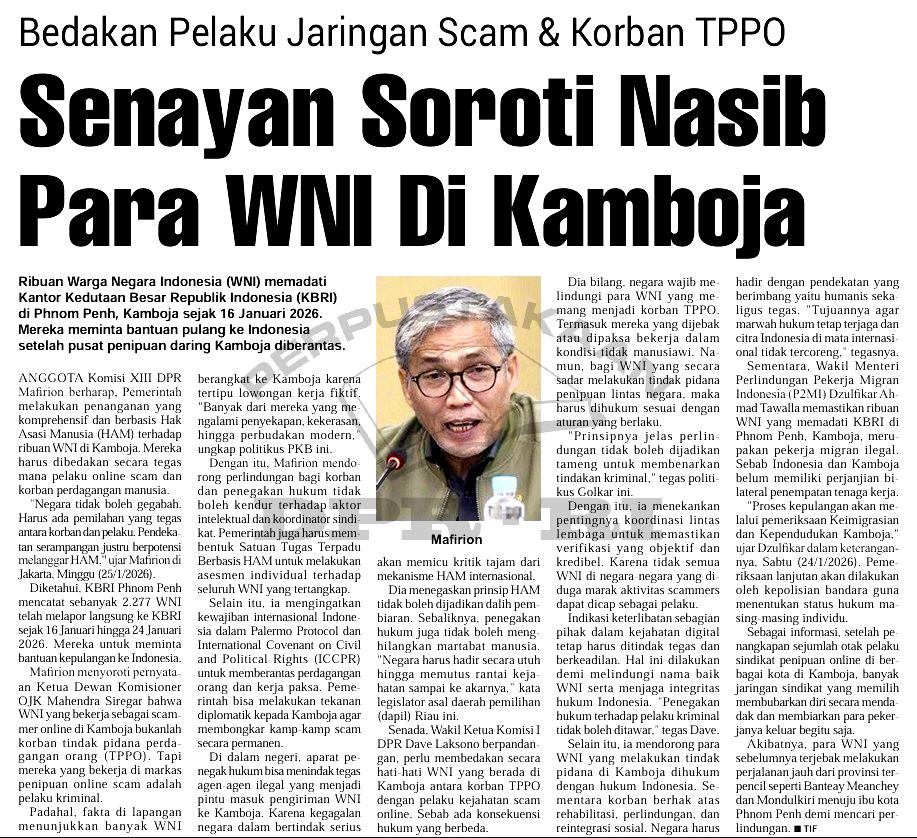 | Judul | Bedakan pelaku jaringan scam & korban TPPO, senayan soroti nasib para WNI di Kamboja |