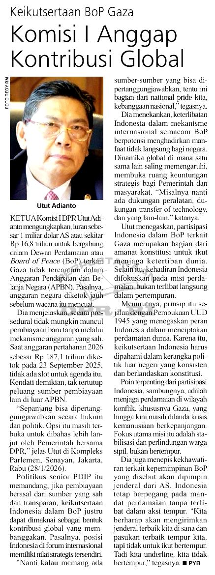 | Judul | Keikutsertaan BoP Gaza, Komisi I anggap kontribusi global |