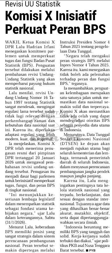 | Judul | Revisi UU Statistik, komisi X inisiatif perkuat peran BPS |
