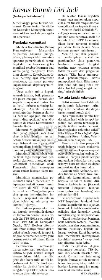 | Judul | Kasus Bunuh Diri Jadi Cermin Kerentanan |