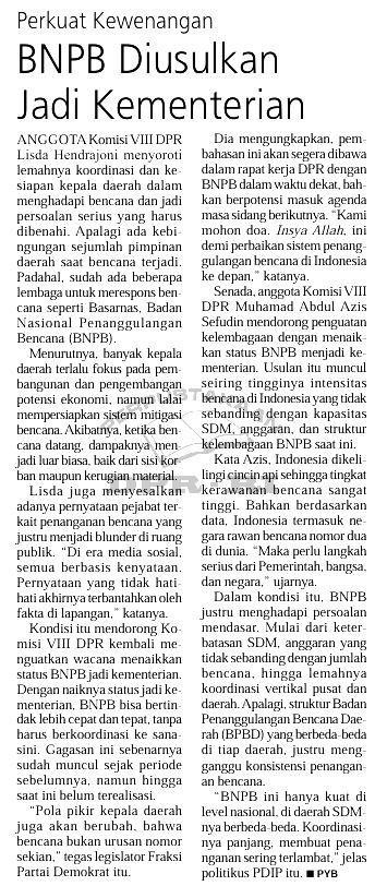 | Judul | Perkuat kewenangan, BNPB diusulkan jadi kementerian |