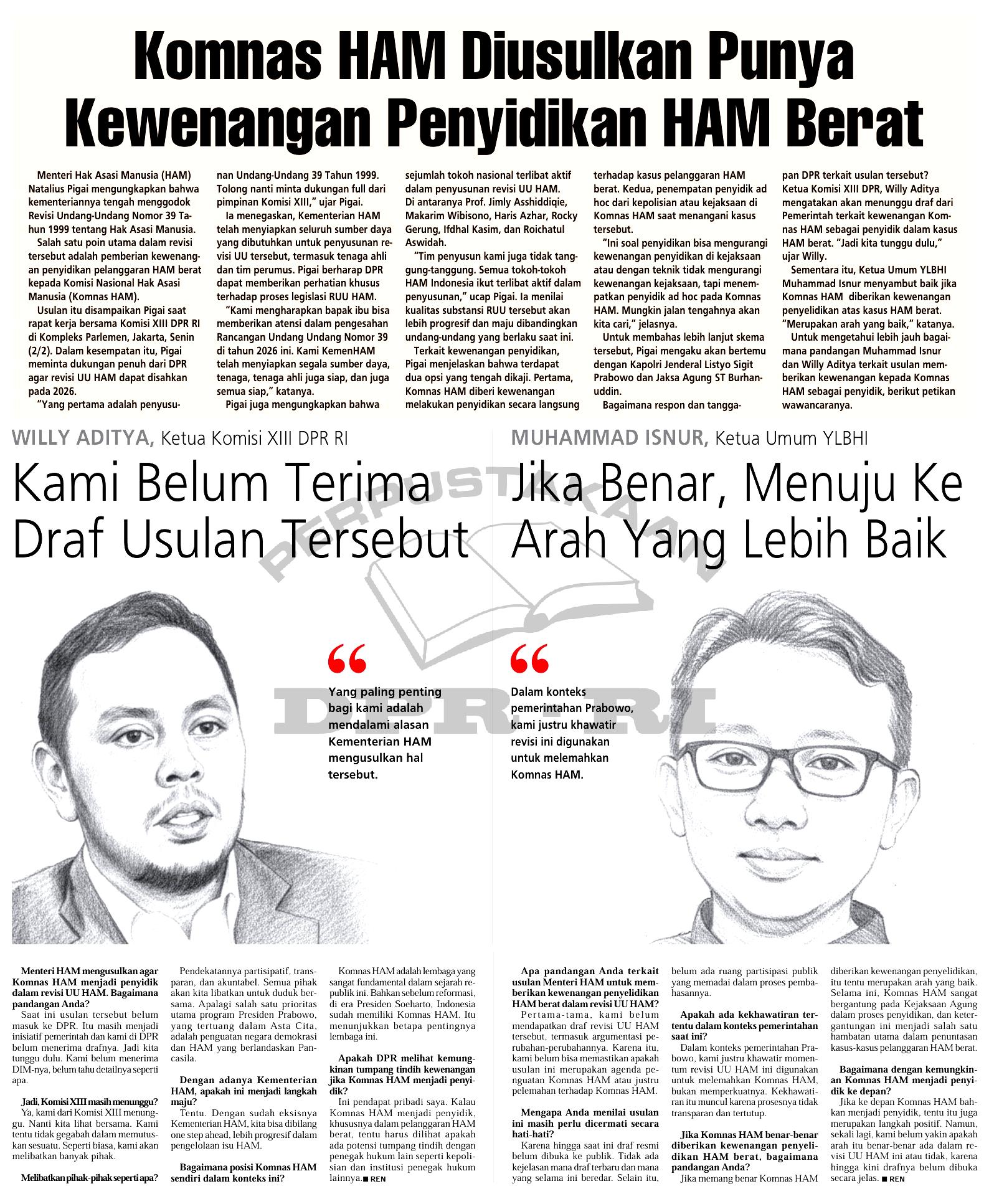 | Judul | Komnas HAM diusulkan punya kewenangan penyidikan HAM berat |