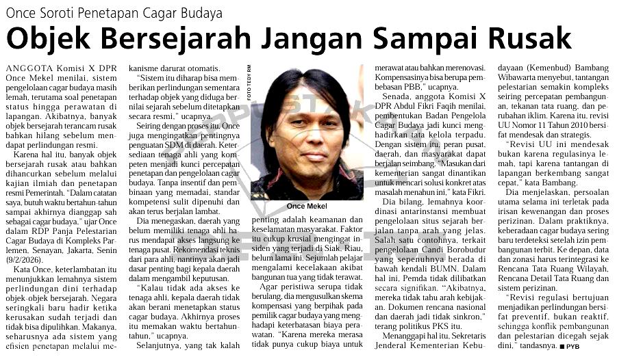 | Judul | Once soroti penetapan cagar budaya, objek bersejarah jangan sampai rusak |