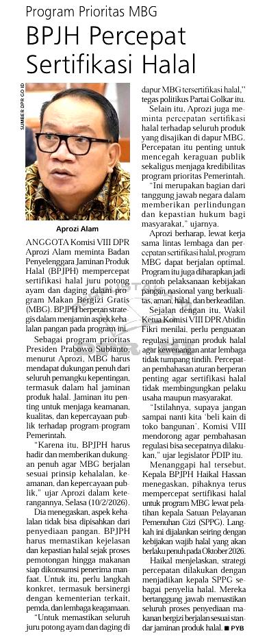 | Judul | Program prioritas MBG, BPJH percepat sertifikasi halal |