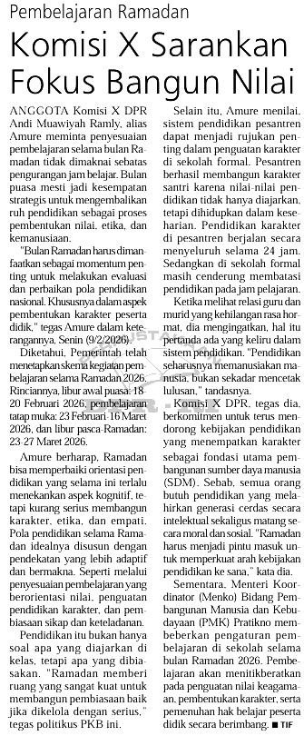| Judul | Pembelajaran ramadhan, komisi X sarankan fokus bangun nilai |