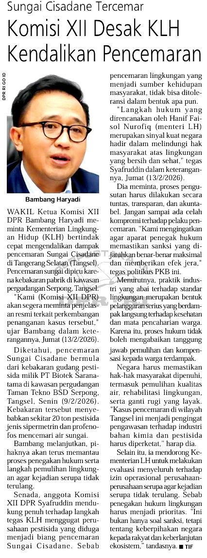 | Judul | Sungai cisadane tercemar, komisi XII desak KLH kendalikan pencemaran |